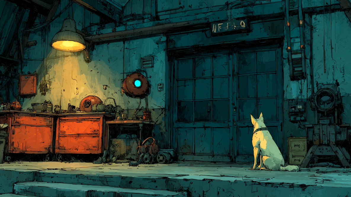 The woman inside had pink double ponytails and arms covered in tattoos that told stories he didn't have time to read. Her hands were workshop-worn, knuckles nicked from solder work, grease permanent under her nails. She was holding a circuit board up to a lamp and she didn't look away from it when he stepped in.