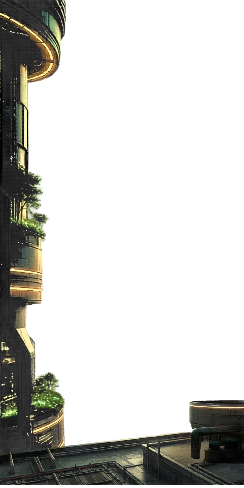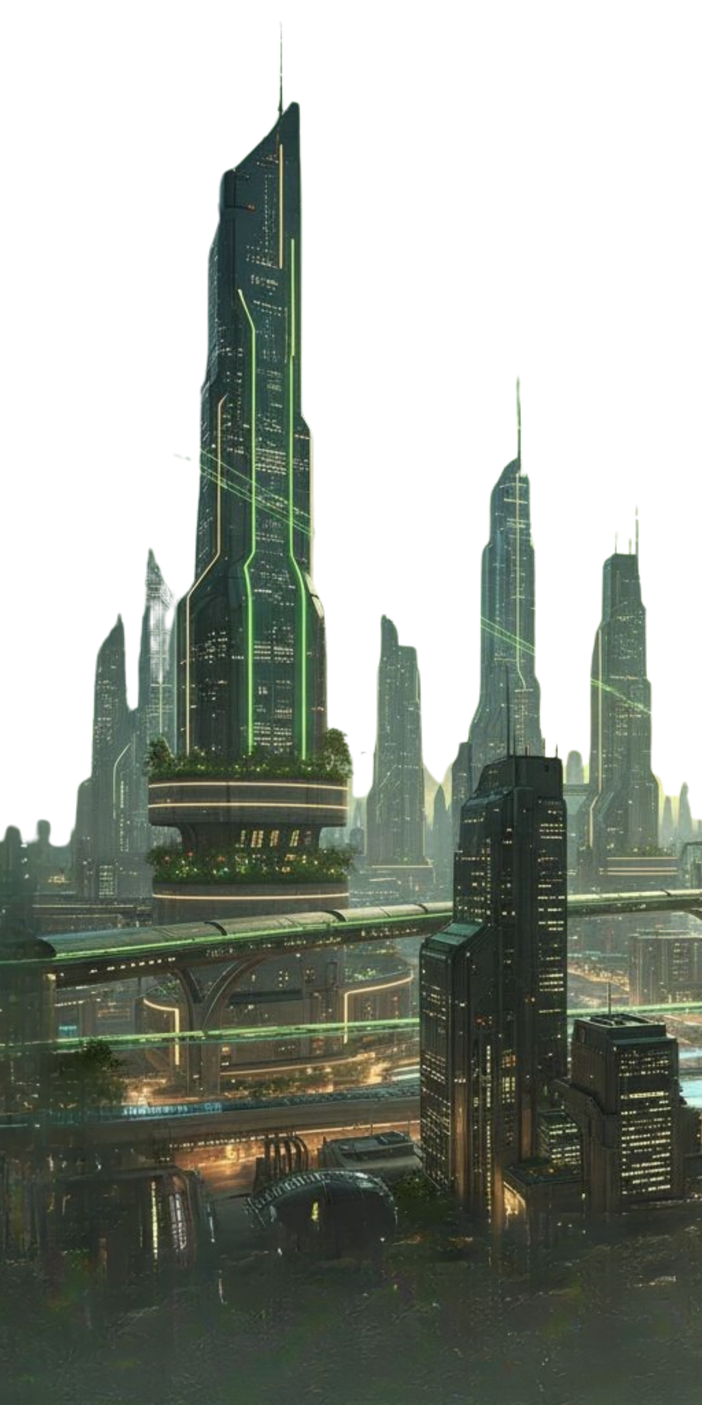The tallest tower in New Arcadia. Clean air, filtered light, decisions made at altitude. The most consequential research in the city happens somewhere inside these walls. Whether it ever reaches the people who need it is another question.